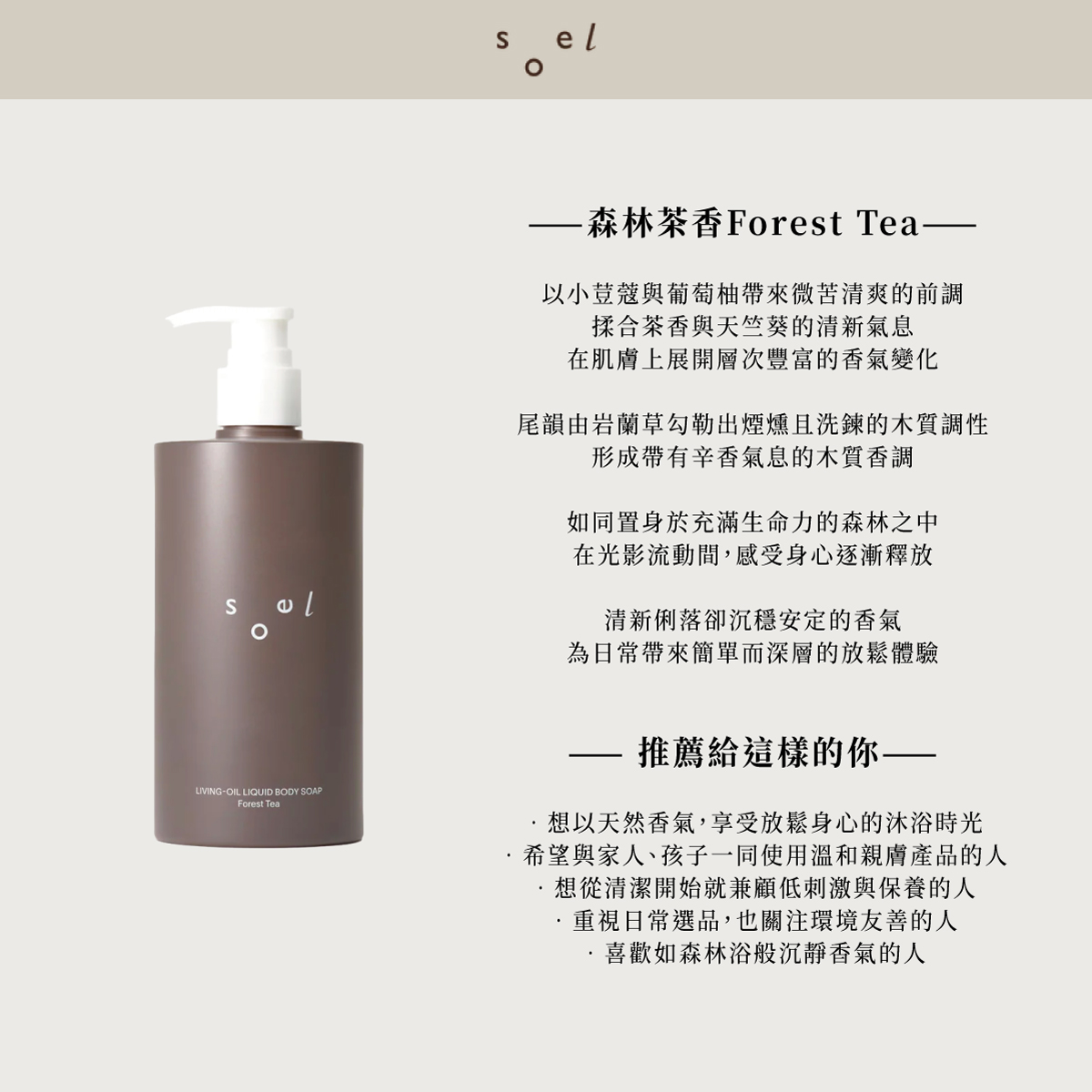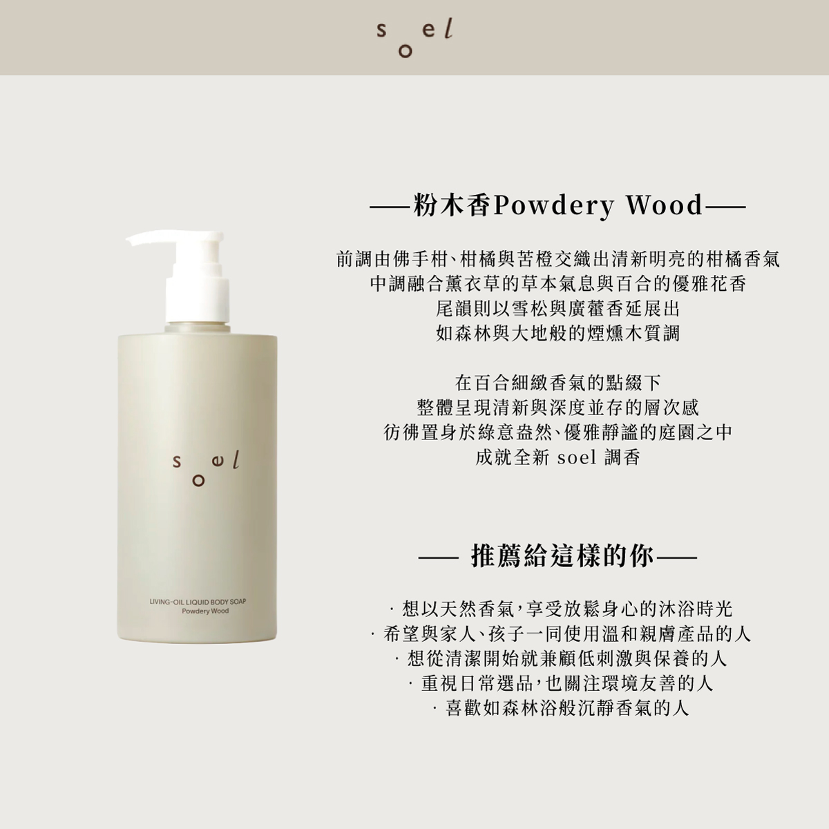 洗後肌膚水嫩!soel 植萃沐浴乳400mL