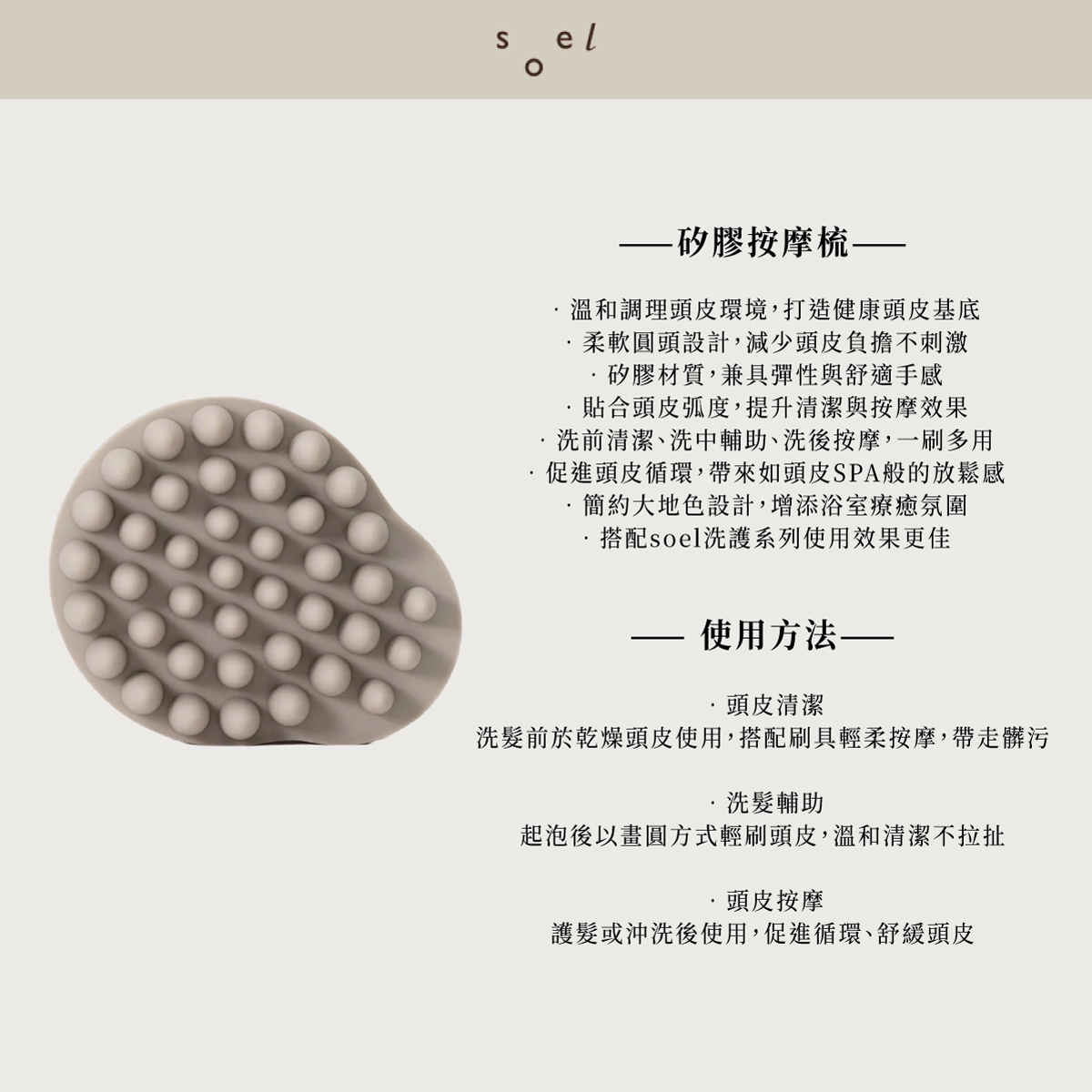 頭皮活血!soel 矽膠按摩梳