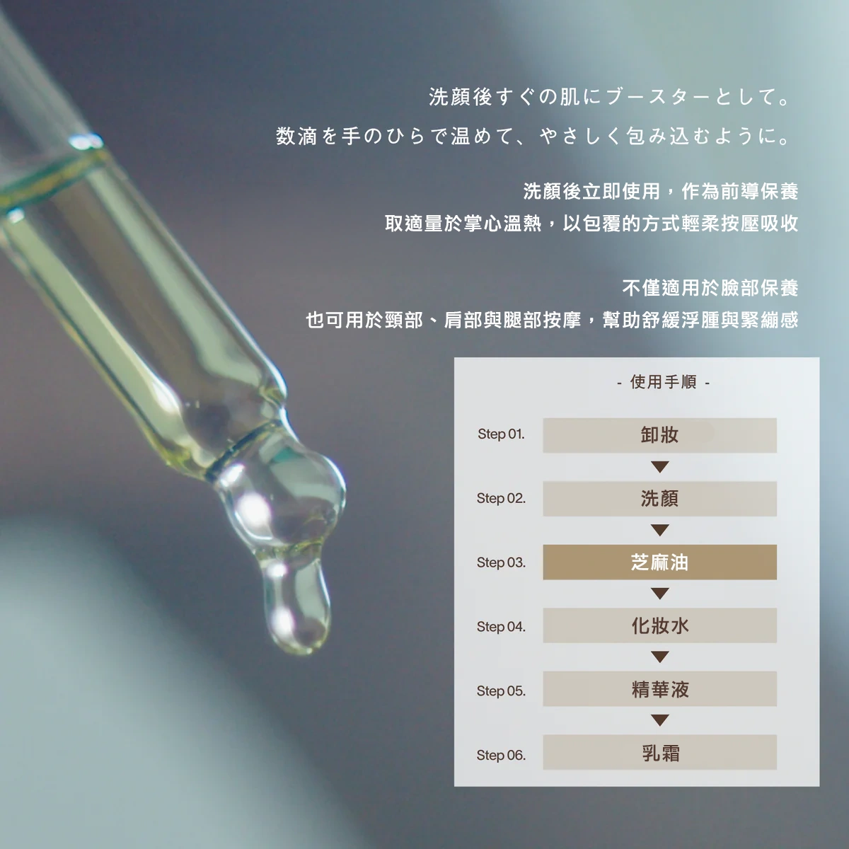❁ 洗後先用油,提升化妝水吸收力