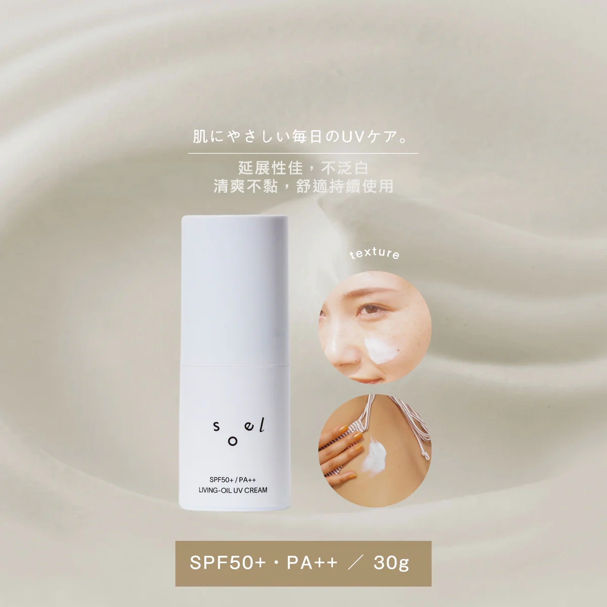 輕盈不泛白!soel 防曬乳霜SPF50+