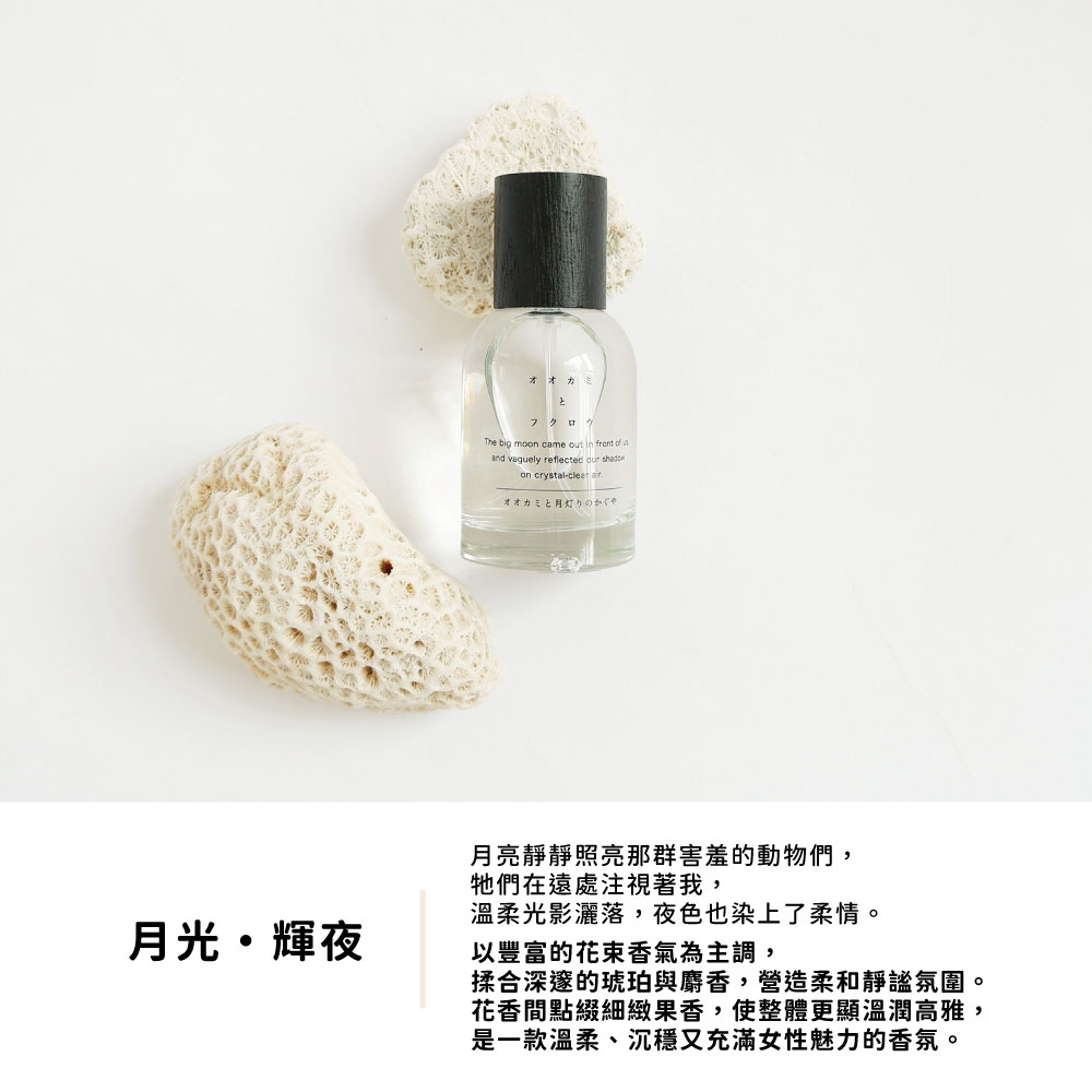 | 款式 | 月之舞, 月夜聖歌隊, 睡過頭的郊狼, 狼與刺蝟・象牙白, 野玫瑰協奏曲, 貓頭鷹・三拍花束, 小熊座香囊, 貓頭鷹・朝鮮薊的嫩綠, 路邊漫步・坦坦, 月光・輝夜, 車轍之夜曲, 星空素描, 浮沫霧雨, 月滴陶罐, 月之歌劇, 月聲・安娜貝爾 |